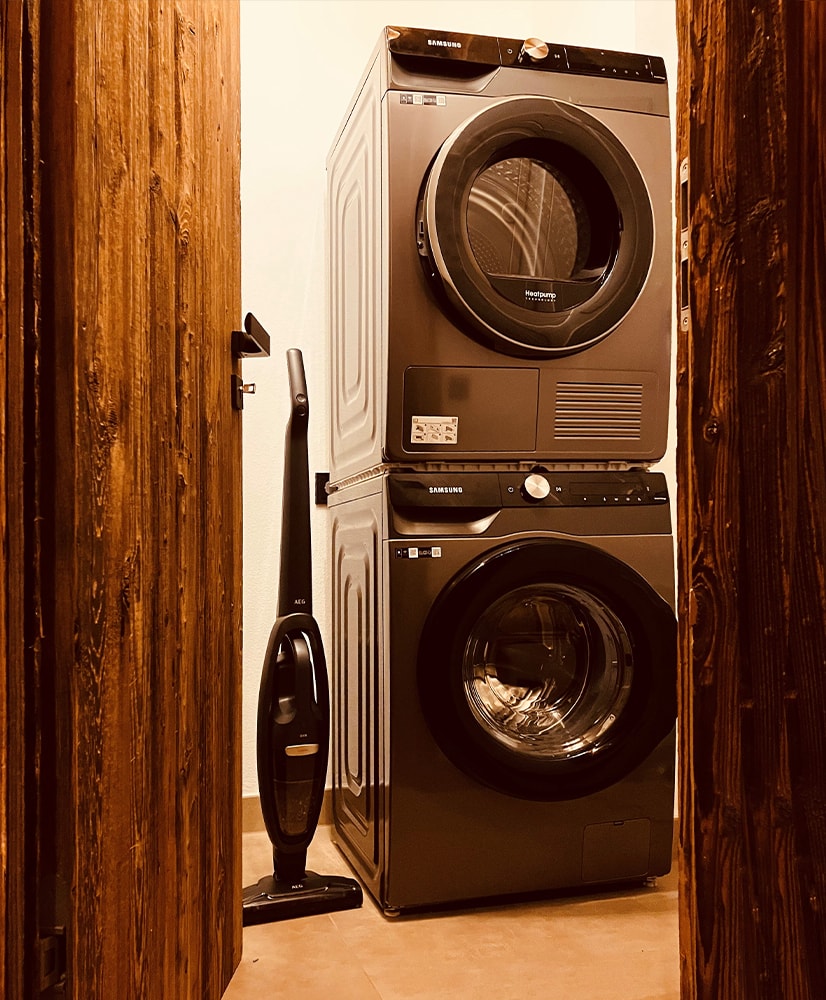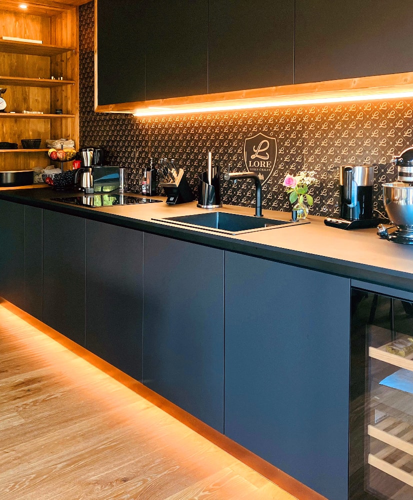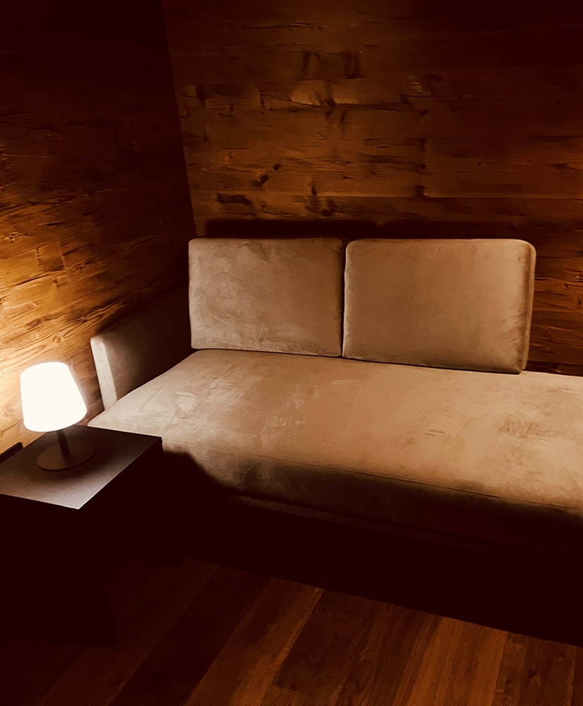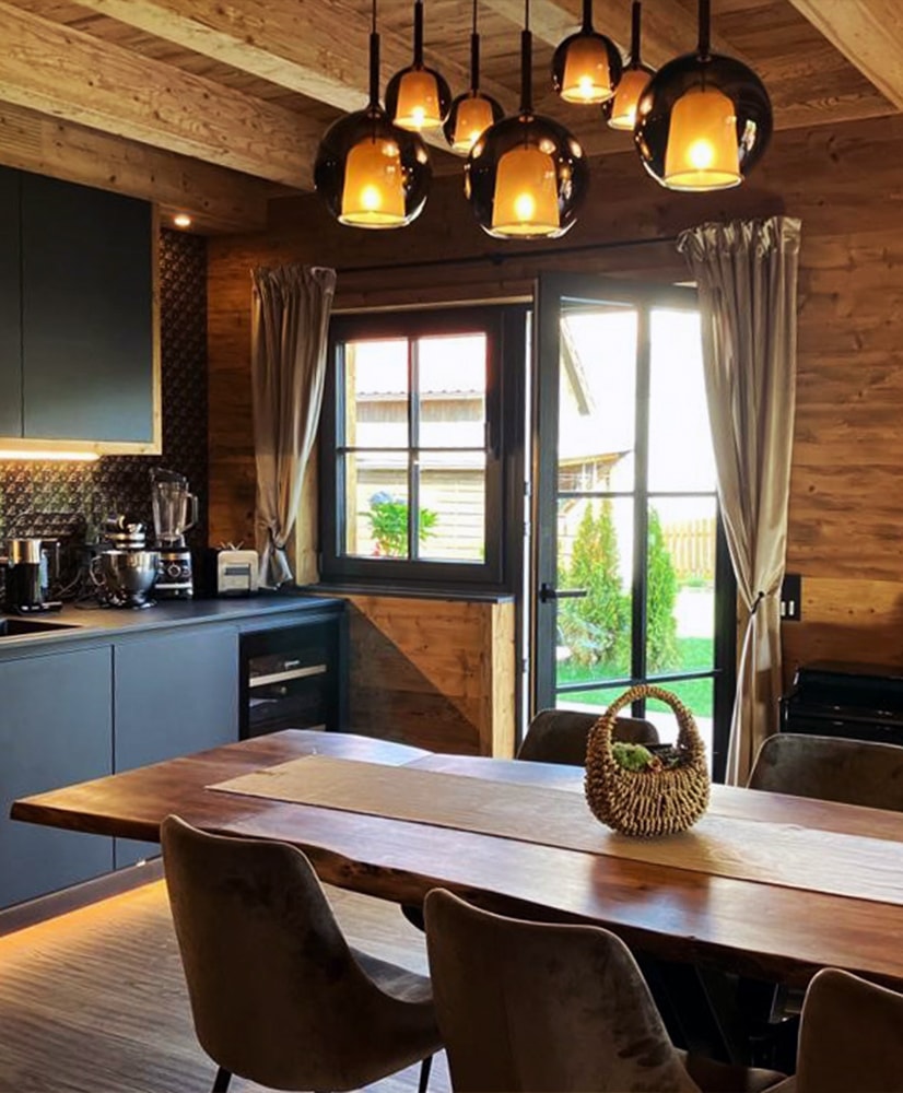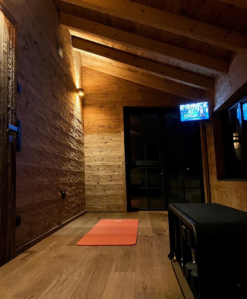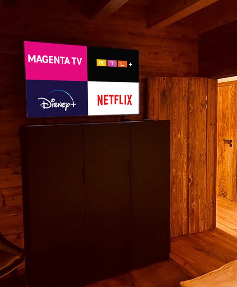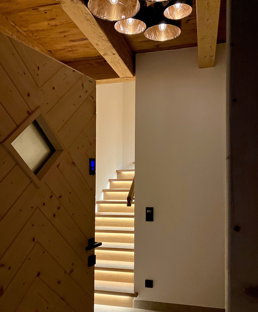 Das Interieur aus warmem Holz, sanftem Licht und hochwertigen Lampen schafft eine Atmosphäre zum Wohlfühlen – elegant, gemütlich und authentisch. Genießen Sie den offenen Kamin mit Holzumrandung, die Infrarotsauna mit Lichteffekten oder den beheizten Whirlpool unter freiem Himmel.
